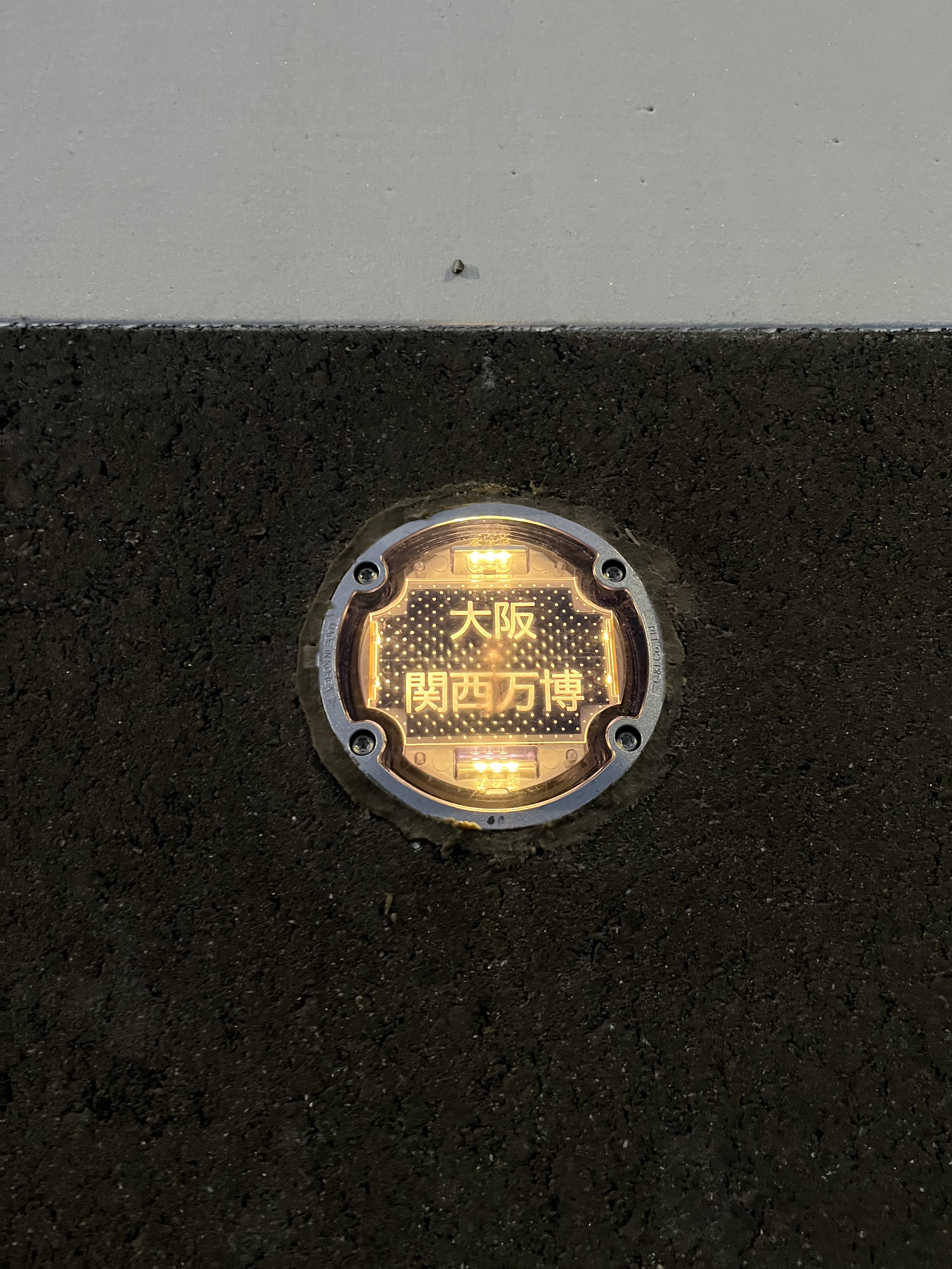 2025.04.18 2025年 大阪・関西万博会場に特別な「発光鋲」を設置してきました。 「発光鋲」とは、 太陽光の蓄電で発光する小さな機械を道路に埋め込み、ドライバーに注意喚起を行うものです。 この度、「大阪・関西万博」の文字入りの発光鋲を、大阪・関西万博の会場に設置してきました。 大阪・関西万博に行かれる際は、ぜひ見つけていただけますと幸いです。 宮川興業株式会社 ©Expo 2025